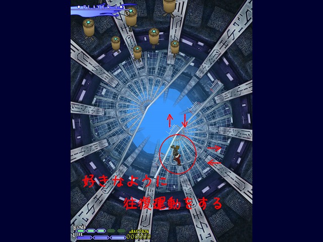 今回はPCゲームの話です。 『レンダリング前最大フレーム数』というのが最近になって話題になっています。 これはずいぶん前からグラフィックボードのドライバ・コントロールに搭載されていた機能でした。 ソフトウェアの開発者は当たり前のように知っていたのかもしれませんが、そうではない人たちが見直さなかったのかもしれませんね。 話題になった経緯は遅延の存在でした。 『レンダリング前最大フレーム数』の設定によって、キー入力から画面に反映されるまでに時間差(ラグ)が存在するため、シビアな入力が要求される対戦ゲームでは致命的ではないだろうかというわけです。 これが本当だとしたら一大事です。 今まで私たちは遅延が当たり前のように存在する状況でゲームを行っていたと言うことも意味するからです。 では、本当に遅延はあるのか、そして『レンダリング前最大フレーム数』についての話をしていきましょう。 なお、OSにウィンドウズXPを使用するときの話をしています。 Vistaや7のAeroについてはまったく触れていません。 ゲームにおいて遅延があるかどうかを調べるのに私が使っている方法があります。 それは、往復運動をくりかえすということです。 一番簡単な例はキャラクターを左右に動かすだけ。 このときシューティングゲームのような単純で動きが分かりやすいものを利用するのが望ましいです。
