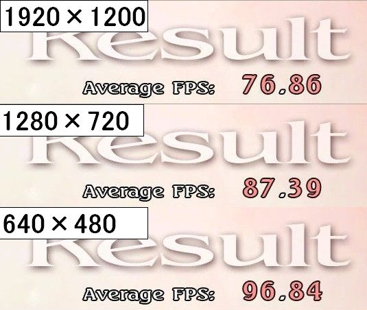 ゲーム機ではD3またはD4相当の解像度で出力されることが多いので、PCゲームをやるのならばせめてD4相当(1280×720)の解像度で遊びたいですね。 話はそれますがゲーム機を使うに当たって注意して欲しいことが一つあります。 ゲーム機は性能の限界もあって「内部で出力される解像度はD4程度の場合が多い」のです。 したがって画像が出力される際に適当な解像度へアップコンバートまたはダウンコンバートされています。 一方でPCゲームの場合は、ゲーム側で設定した解像度そのままで出力されます。 つまりゲーム機でやる場合よりもPCでやる場合の方が負荷が大きくなりますが、より素晴らしい映像で遊べるわけです。 また、今現在主流のモニターやテレビはは液晶またはプラズマですが、これらは画素が固定されているモニターです。 要はモニターが表示できる最大の解像度に満たない映像は、モニター(テレビ)や機器によって引き延ばされているわけです。 引き延ばされた画像は本来の画質よりも劣化していることに注意してください。 ということは、地上デジタル放送とゲーム機の映像を100パーセントの状態で見られるテレビはないわけです。 (世の中にあることにはあるのですが、今現在新品で手に入る物にはありません) つまり液晶モニターを使いPCでゲームをやる場合、表示できる最大の解像度が最も美しい解像度ということになります。 このようにモニターが持っている最大の画素(解像度)で映し出された映像はドットバイドットと呼ばれています。 (モニター側で表示解像度をいじれる製品はありますが、画面が小さくなります) ところがPCゲーマーならおなじみではありますが、解像度はゲームのパフォーマンスに大きな影響を与えます。 下にラストレムナントとデビルメイクライ4のベンチマーク結果を貼り付けておきます。 上から解像度は1920×1200、1280×720、640×480です。 それぞれD5、D4、D2と同じ解像度です。 まずはラストレムナントのベンチマーク結果から見てみましょう。